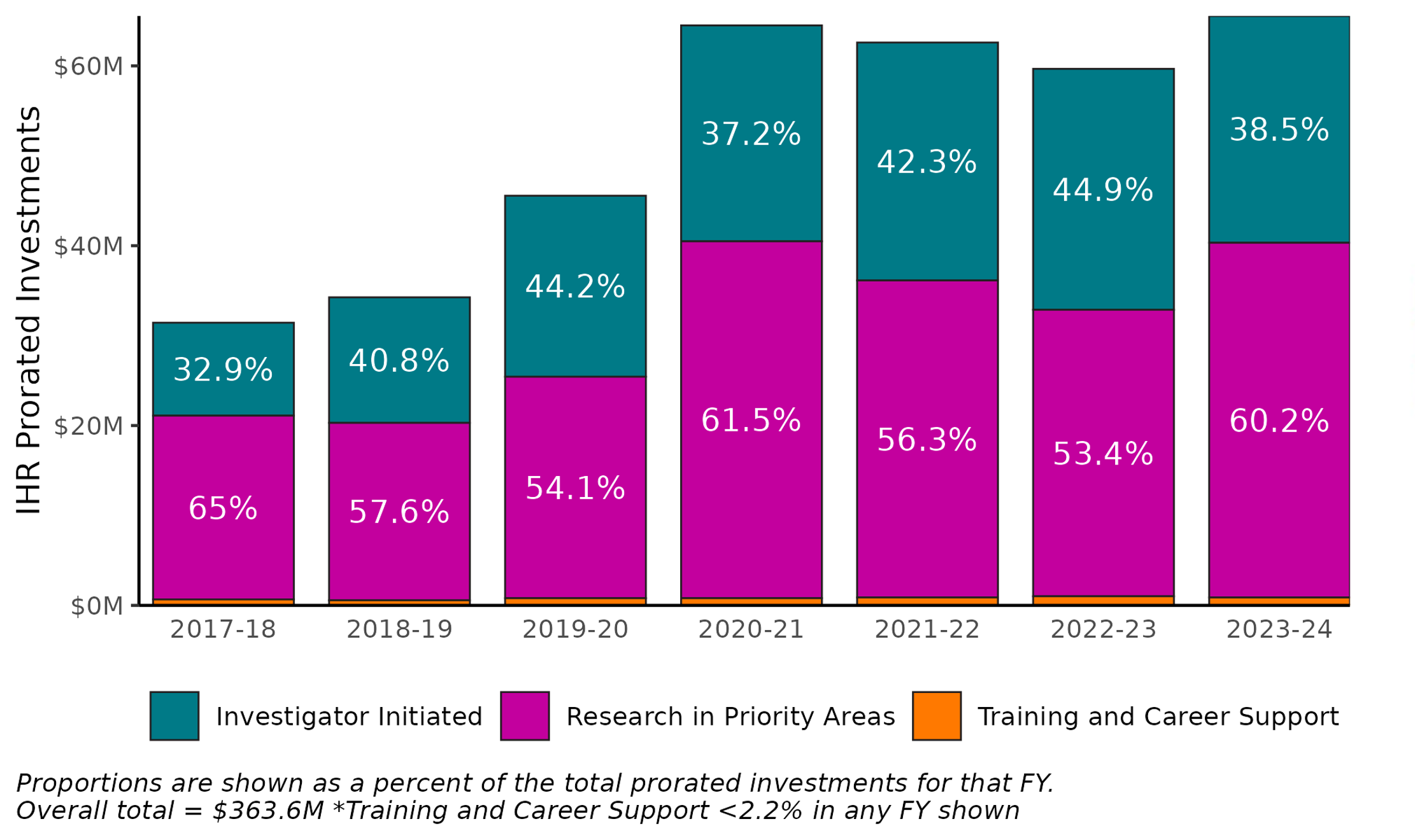 In FY 2023-24, CIHR's estimated investments in IHR is $65.5M.